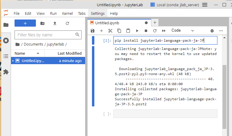 pip install jupyterlab-language-pack-ja-JP